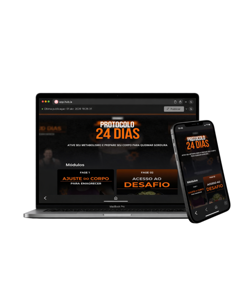 Durante os 24 dias do desafio, você vai receber um eBook com cardápio para cada refeição do seu dia. Você vai ser orientado sobre como fazer cada refeição e quais exercícios deve fazer. Aqui é a parte mais importante, onde você vai realmente desinchar e emagrecer.